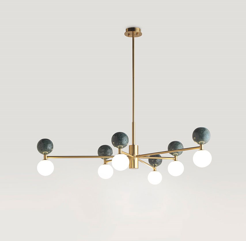 Люстра Aromas Dalt 6L матовое золото - зеленый мрамор