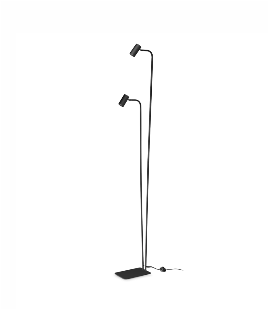 Основание и корпус напольного светильника Ideal lux Ginger выполнен из металла в порошковой покраске. Плафон поворотный. Провод из ПВХ с выключателем и штепсельной вилкой. Версия с двумя плафонами оснащена двойным выключателем для независимого включения/выключения каждой лампы. Цвета на выбор белый или чёрный.