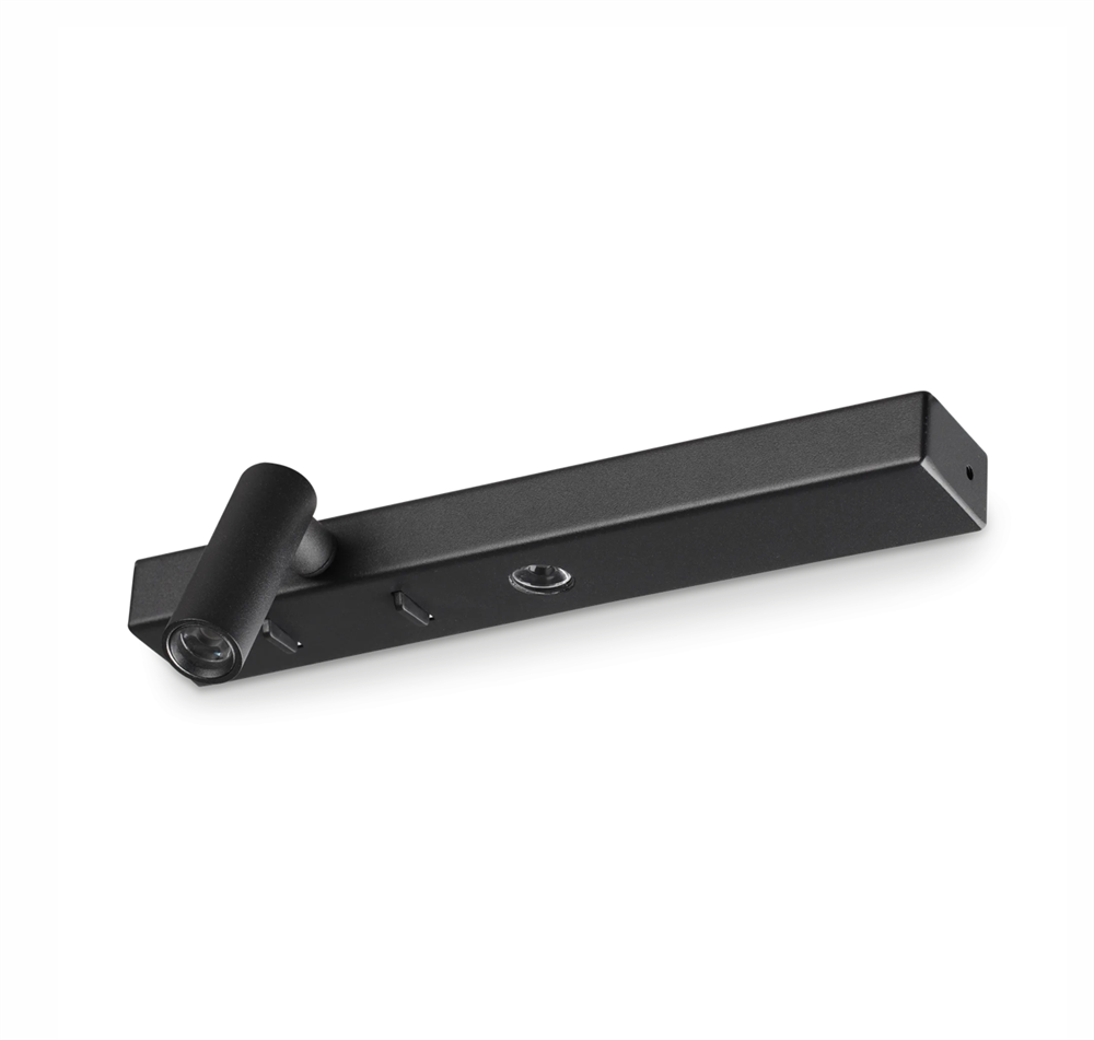 Каркас настенного светильника Ideal lux Bonne Nuit выполнен из металла в отделках: белый, чёрный, латунь, никель. Двойной источник света: один неповоротный и один на поворотном цилиндре. Два встроенных выключателя независимые друг от друга.