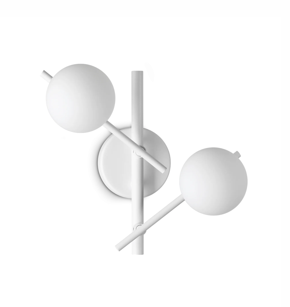 Чаша и арматура, настенного светильника Ideal lux Atlas, выполнена из металла, плафоны выполнены из белого матового стекла. Доступен в отделке матовое золото, матовый чёрный и матовый белый.