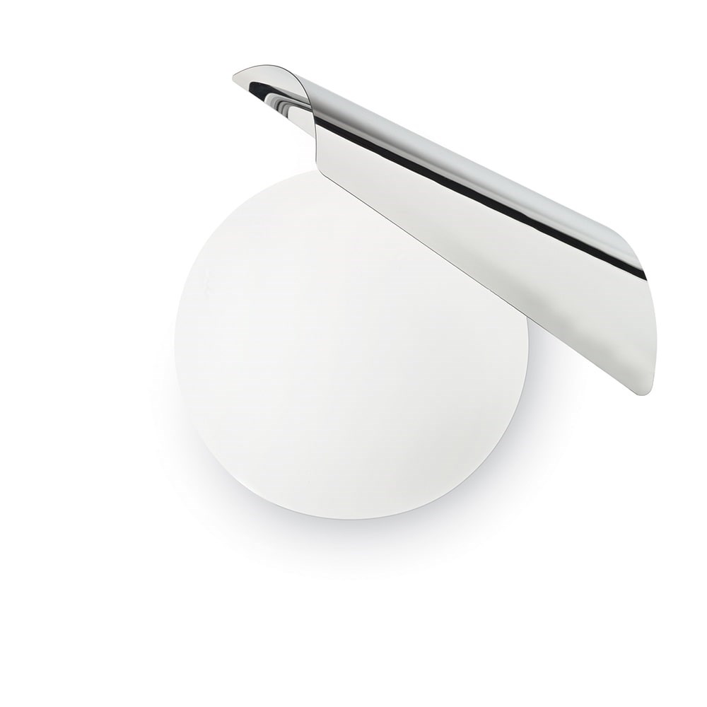 Основание и "козырёк", бра Ideal lux Penombra, в отделке хром, белый вытравленный плафон изготовлен из стекла и создаёт мягкое рассеивание света.