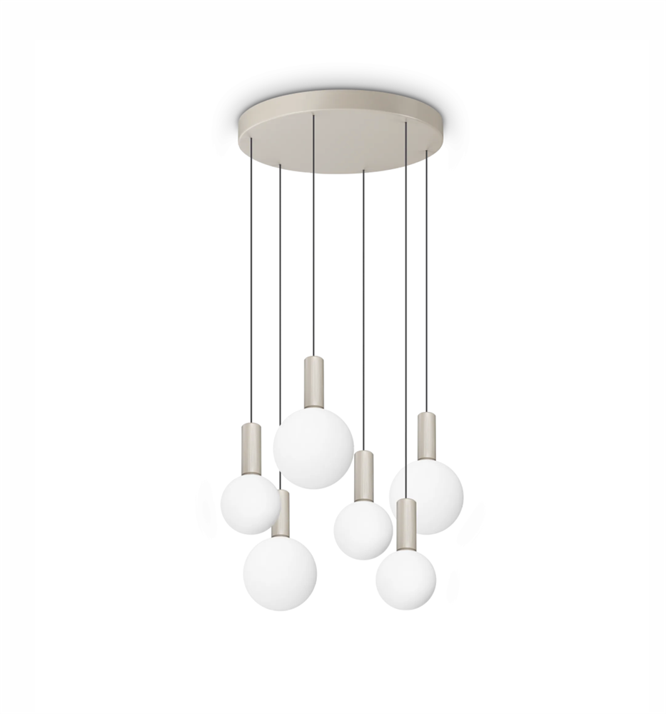 Потолочная чаша Ideal lux Odeon выполнена из матового окрашенного металла. Цилиндрический металлический элемент с полосатым декором. Плафоны из белого матового дутого стекла. Кабели из черного ПВХ.
